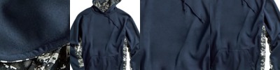- Contrast reverse coil zippered media pocket with headphone exit port