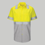 - Two button-thru, hex-style chest pockets with bartack reinforcement and pencil stall on left chest.
