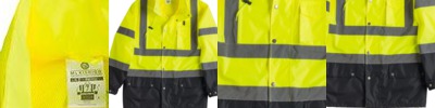 - Removable zip up hooded sweatshirt with two slash pockets and reflective bands on left arm